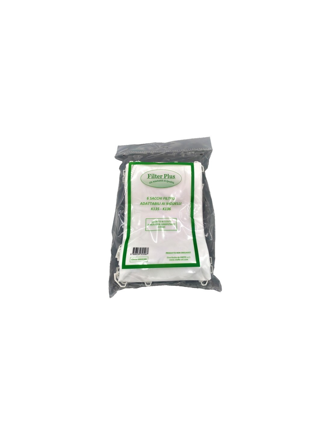 FOLLETTO 6 SACCHETTI FILTRO IN TESSUTO AD ALTA FILTRAZIONE FILTERPIU' COMPATIBILE K135- K136... Cod. FPL135B Prezzo quantità NUOVA PRODUZIONE 2025 Dettagli